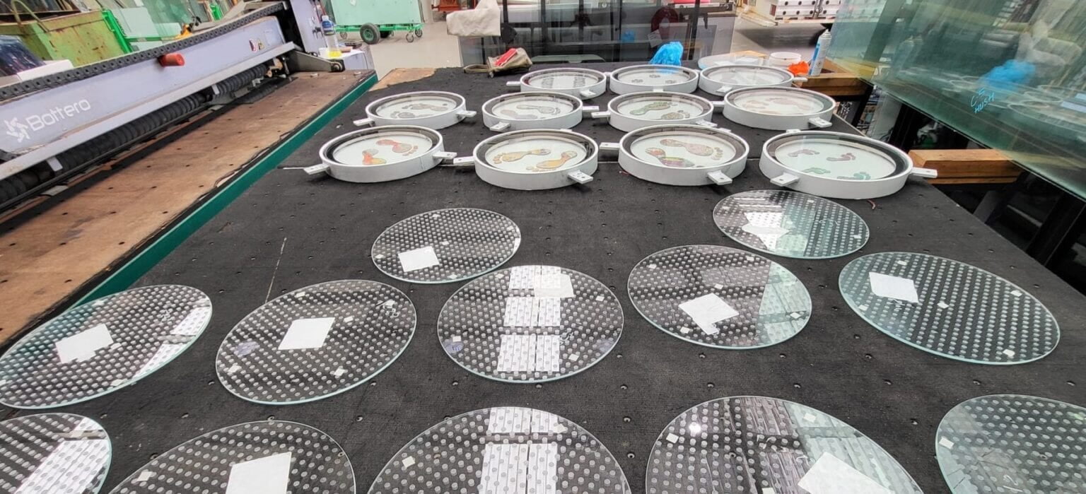 Glass floor panels are increasingly popular and can create innovative spaces. However, they are prone to causing slips and falls, especially in wet conditions. The unique characteristics of glass, makes it inherently difficult to achieve the required level of slip resistance. Moreover, etching or sandblasting are expensive non-slip solutions for glass, especially when a pattern is required.